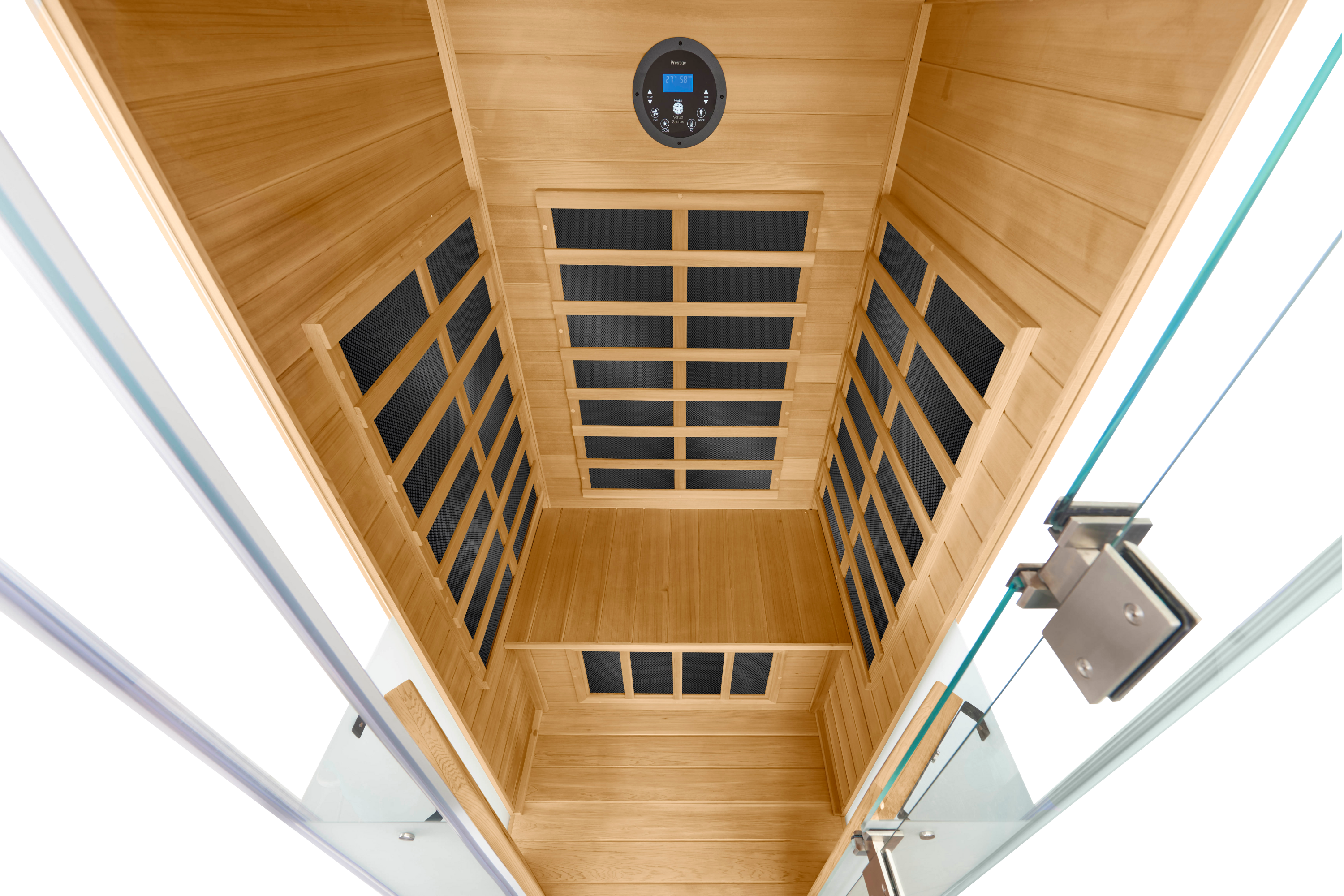 Prestige™ Infrared Sauna Specifications. All Vortex™ Prestige™ infrared saunas are built to high-quality standards but what really sets these saunas apart is the wide angle of view, so you never feel boxed in.