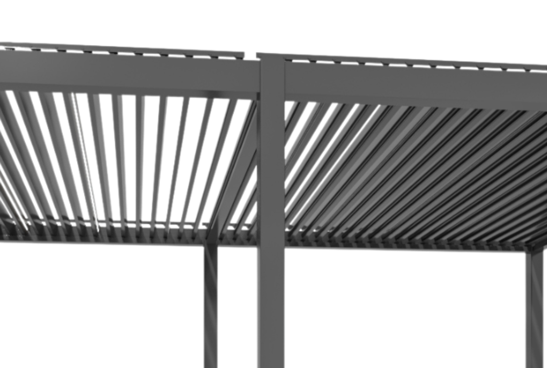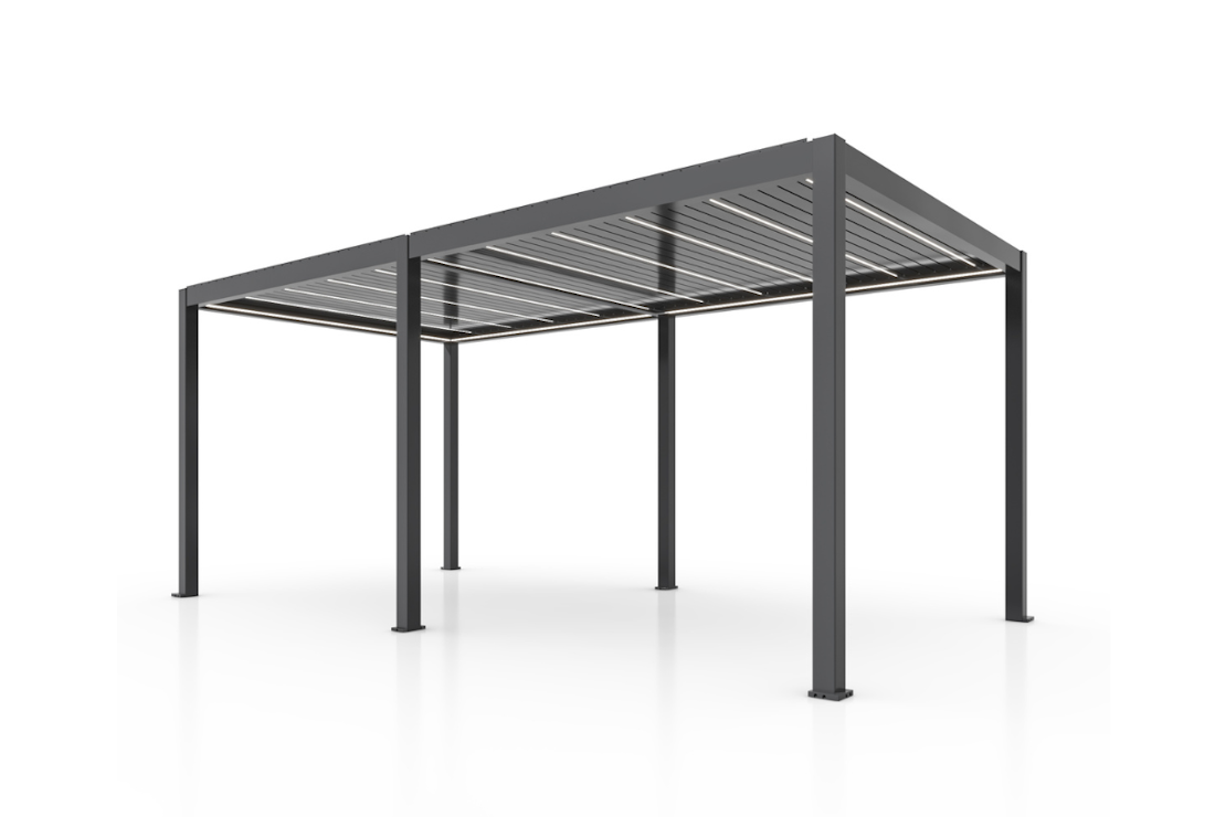 Shade and protect your family with this Vortex Pergola™ featuring remote-controlled motorised louvres for easy operation and LED lighting for night entertaining.